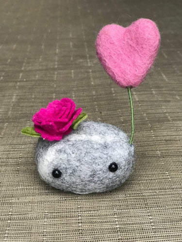 Felted Wool Stone Softie with Heart Balloon and Rose