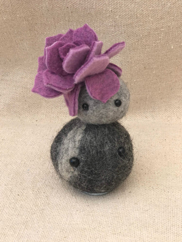 Felted Wool Stone Softie Stack with Succulent Fascinator